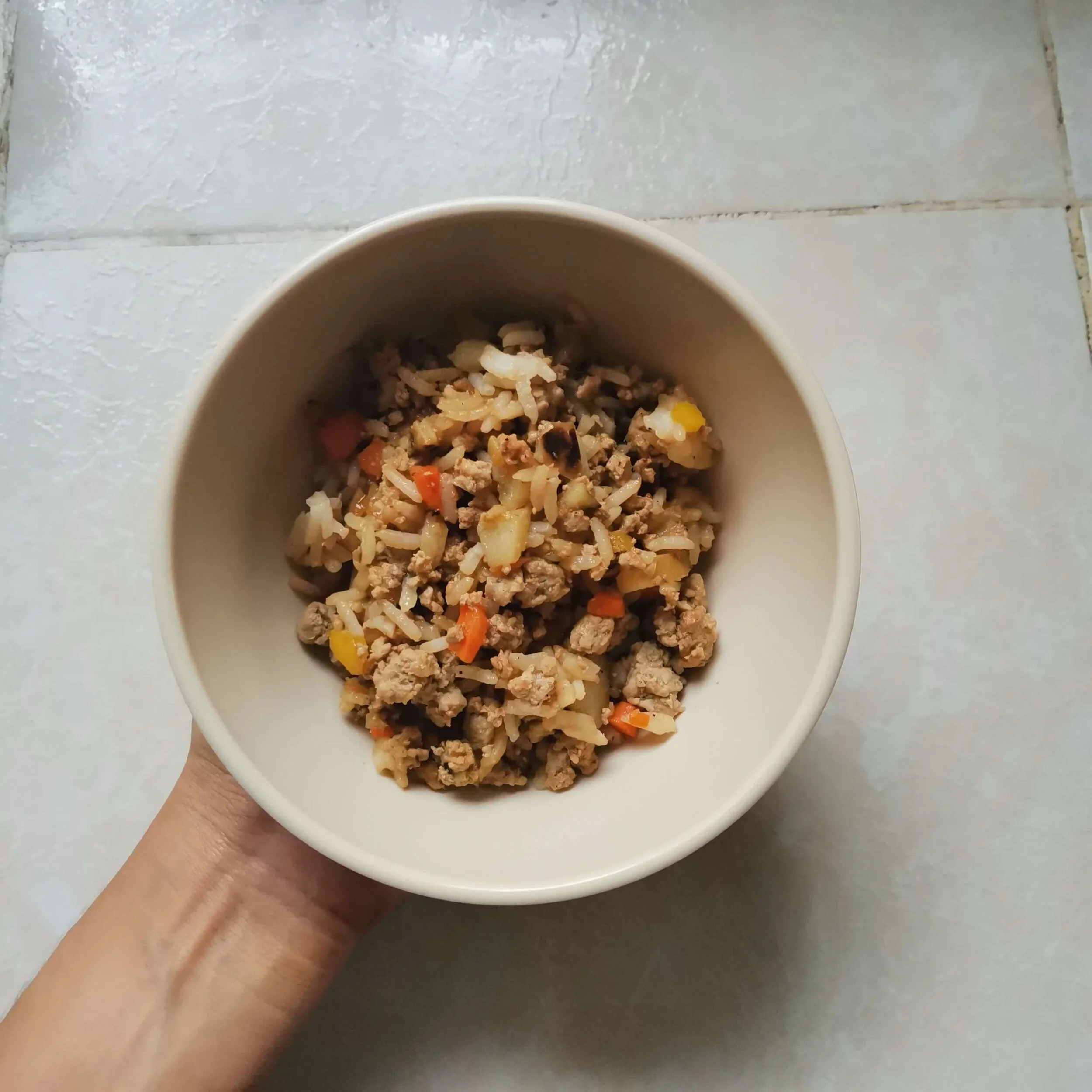 Carne molida con verduras (carne molida de cerdo, coliflor, zanahoria, pimiento)